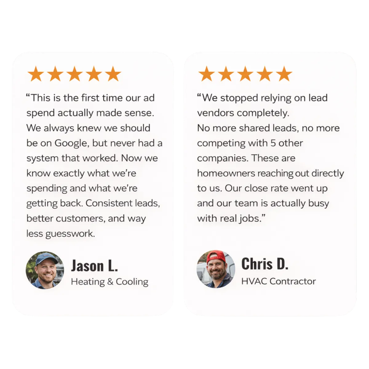 We generate exclusive HVAC leads using Google Ads, driving real homeowner calls and booked jobs while we handle everything from ads to follow up.